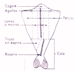 El bacalao es un animal, que como el cerdo, es aprovechable en su casi totalidad. Más abajo hay un dibujo explicativo de las distintas partes en que se divide el animal y una forma de corte, existen cinco, para hacer los distintos platos aprovechando las partes del cuerpo de forma idónea. Pero existen otras partes no menos importantes, como son la cabeza, con la cual se hacen magníficos platos en Galicia y Portugal. Hay que tener en cuenta que la comida típica de éste último país es todo lo relacionado con el bacalao. Las kokotchas, que deben de incluir el barbillón, son de las más valoradas por tener gran contenido en gelatina. Las lenguas, que en la mayoría de los casos van unidas a las kokotchas y según dicen los entendidos es la parte mejor de todo el pescado. El hígado, de cuyo aceite se obtiene un aporte de vitaminas, ya que es rico en vitaminas A y D, más sus ácidos docosahexaenoico (DHA), que es un ácido graso Omega 3 y su ácido eicosapentaenoico (EPA), a los cuales se le atribuyen muchas cualidades, pero que están malísimos de tomar (aún recuerdo de pequeño los malos ratos que pasaba cuando mis padres me daban una cucharadita). La huevas que se presentan en el mercado como pasta sazonada con especias. Las tripas, mal llamadas así ya que en realidad es la vejiga natatoria del animal, es una de las partes más valorada del bacalao, de hecho en un tratado de conservación de los alimentos de 1.832 que se publicó en Barcelona dice lo siguiente: "Bajo el equivocado nombre de tripas de bacalao se preparan también las vejigas neumáticas o natatorias; éstas están formadas de una bolsa llena de aire, de siete a ocho pulgadas de largo y tres o cuatro de ancho, que se halla pegada a la concavidad de la gruesa espina del pescado desde su principio hasta el ano. Esta vejiga es gruesa y de una sustancia gelatinosa, y forma un manjar delicado cuando es fresca, y aun bastante apreciado si se ha salado aparte en barrilitos".